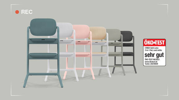 - Bouncer on high chair, with 5-point harness: From birth up to 9kg; approx. 6 months